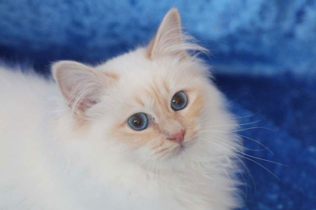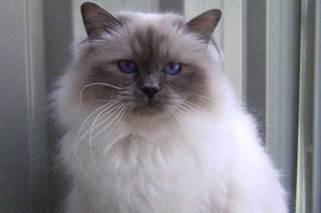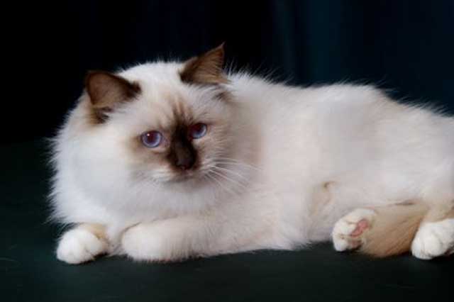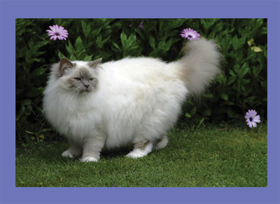 The Birman cat is available in many colours and patterns to their points. The "point" refers to the darker extremeties of the face, ears, legs and tail.